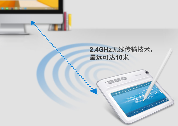 - 无线小蒙恬采用2.4GHz无线传输技术,最远可达10米,简洁利落的无线设计,能维持工作桌面的整齐,让您不受羁绊,享受自由自在的手写感!