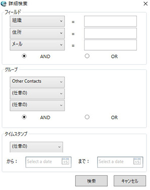 テキスト検索及び詳細検索より名刺データを検索することができます。